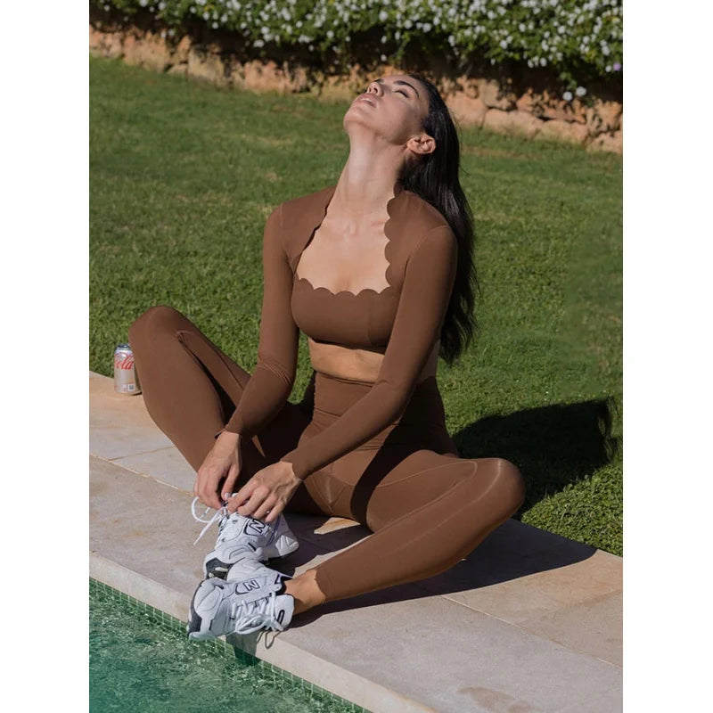 Black Square Neck Tight High Elastic Skinny Yoga Sports Long Sleeves Fashion Compression Pants Fitness Leggings Workout Tights