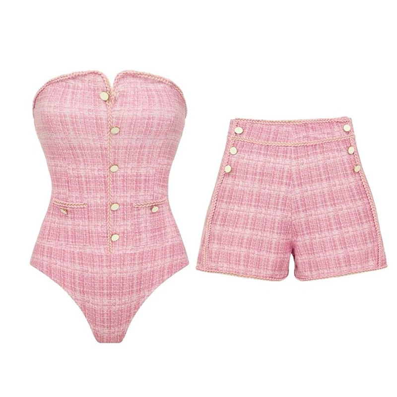 Hoge taille vrouwen sexy strapless badpak en shorts zomer vrouwen bikini set strand zwempak voor vrouwelijke biquini badpak