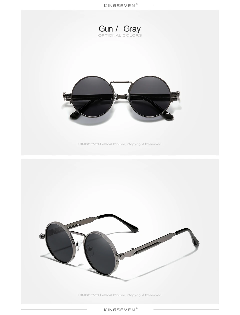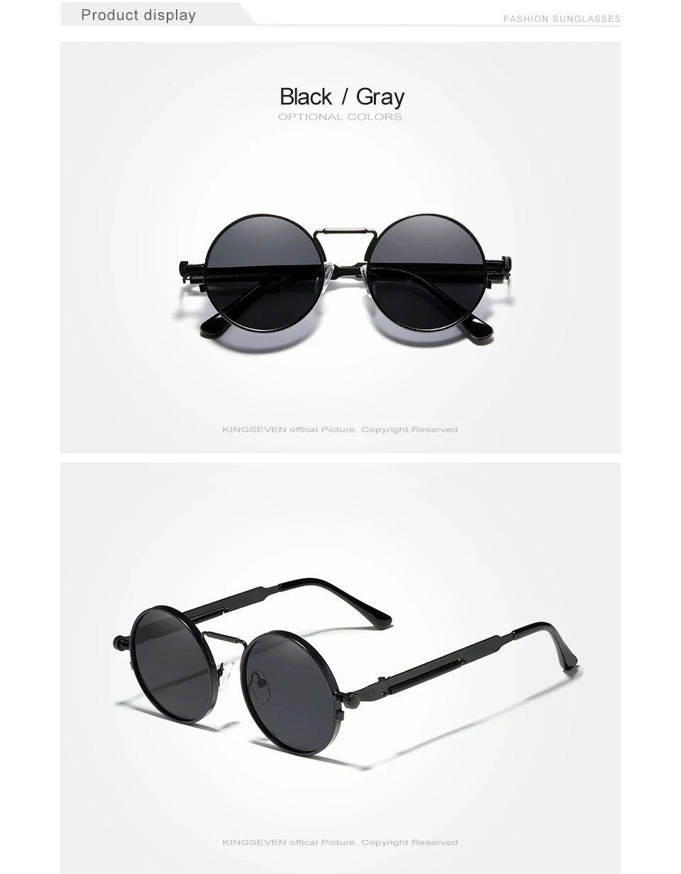 KINGSEVEN High Quality Gothic Steampunk Sunglasses Polarized Men Women Brand Designer Vintage Round Metal Frame Sun Glasses
