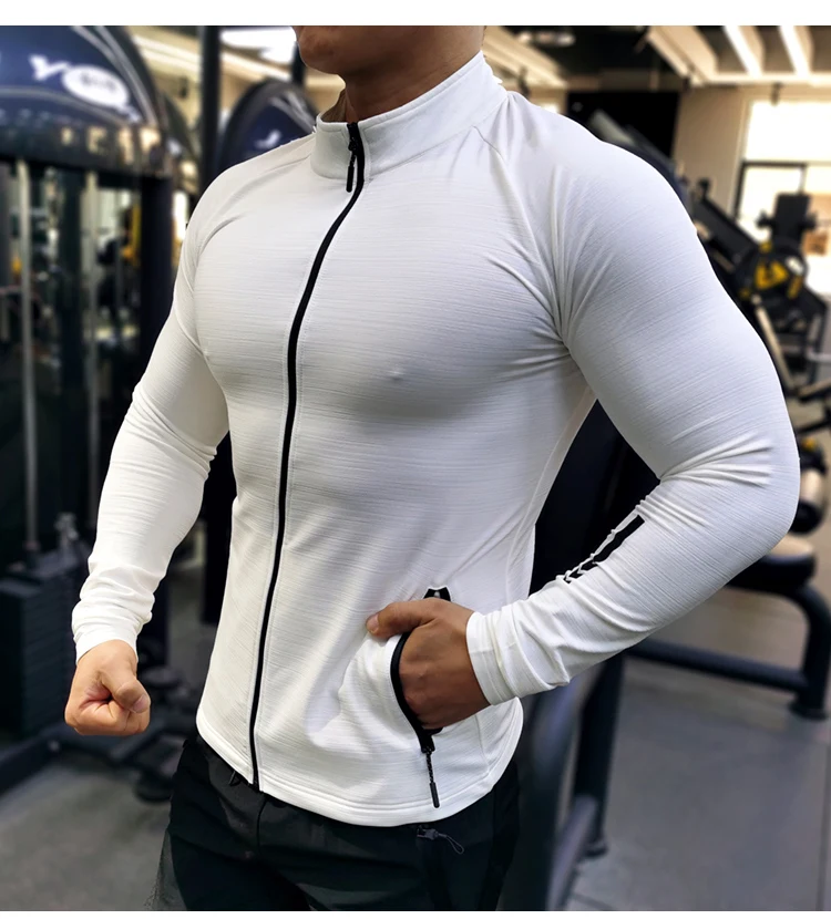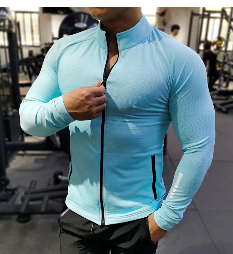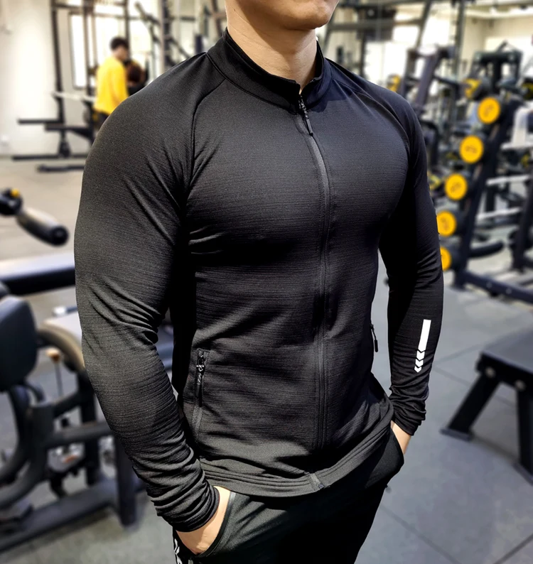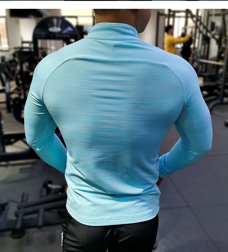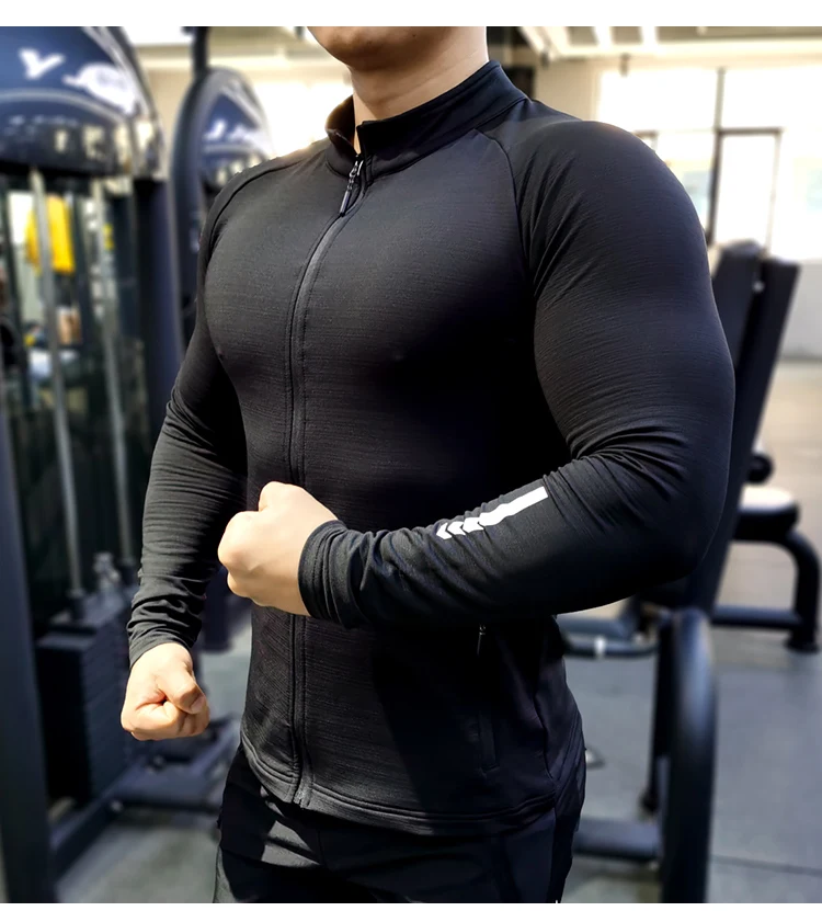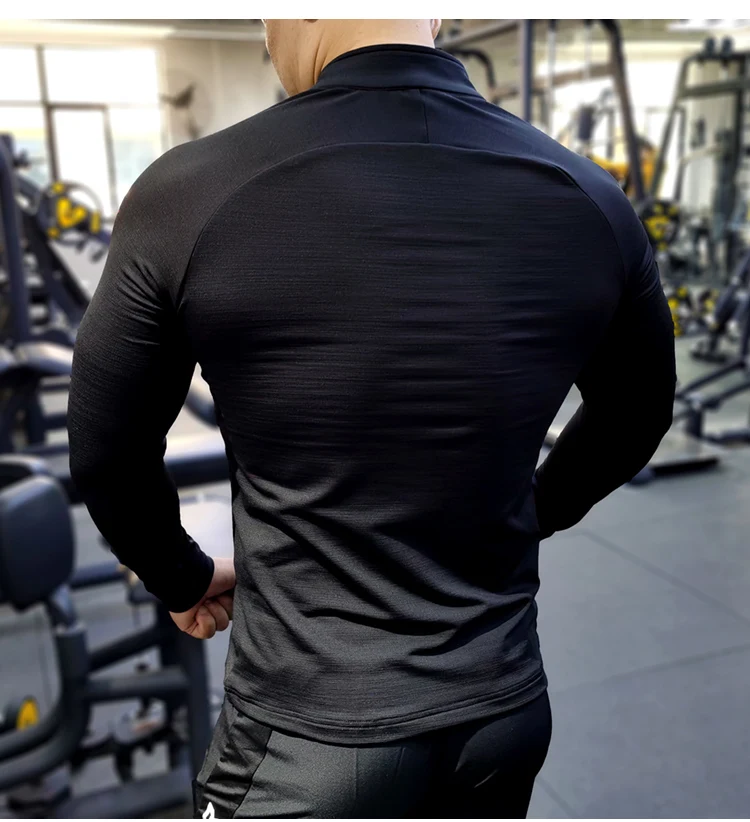Nieuwe Winter Herfst Sport Shirt Mannen Rits Elastisch Sneldrogend Running Jassen Fitness Gym Sportkleding Sport Top Heren Sportkleding