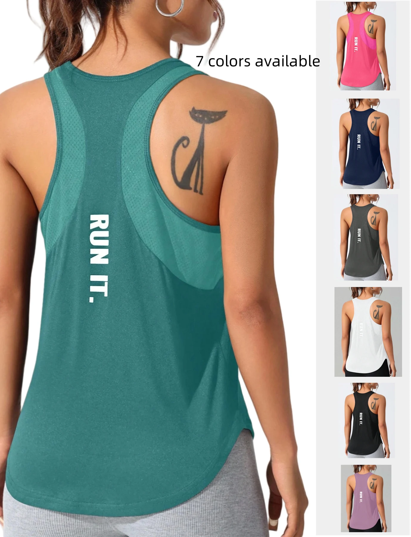 Sneldrogend sportvest met gestikte letters voor dames, ademende yogasportkleding van net, tennisuniformfietspak, dagelijks gebruik